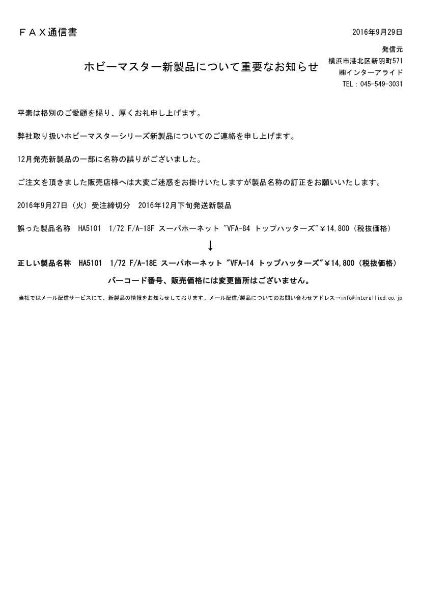 01お詫び_HA5101製品名訂正のお知らせHA5101_F-18E