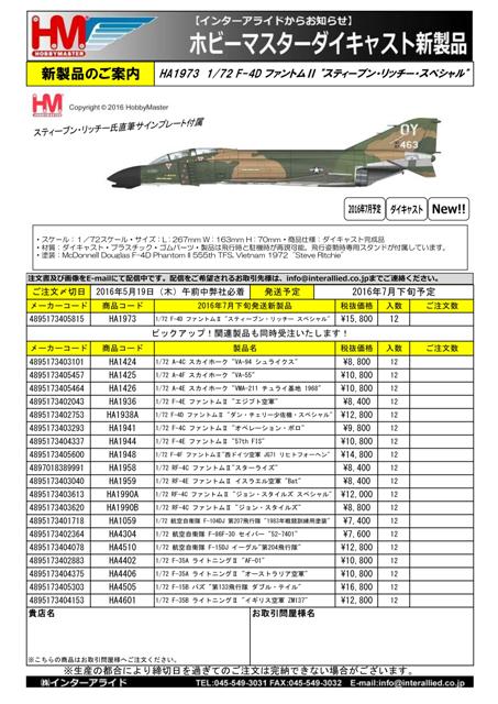 販売店様向けご案内 弊社取り扱いHOBBY MASTER 2016年7月発売予定新製品の販売店様/一次問屋様向けご案内書(JPG)です。
