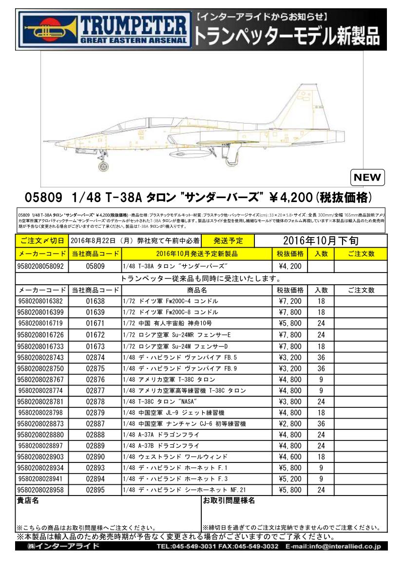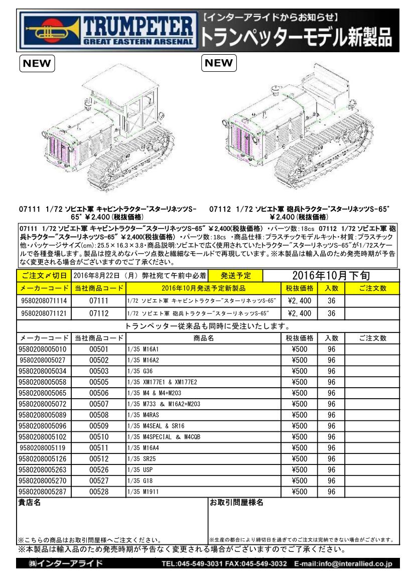 販売店様向けご案内 弊社取り扱いトランペッタープラスチックモデル新製品の販売店様/一次問屋様向けご案内書(Jpg版)です。