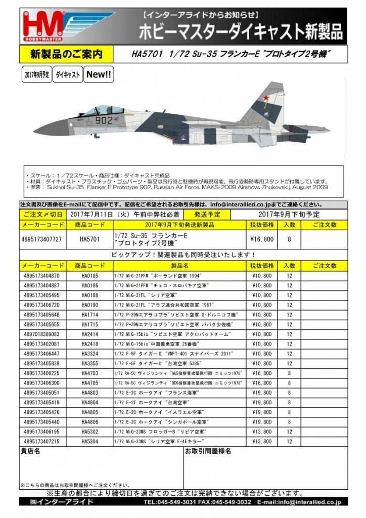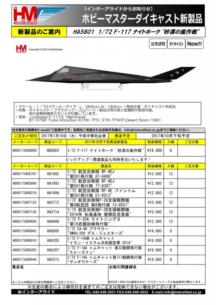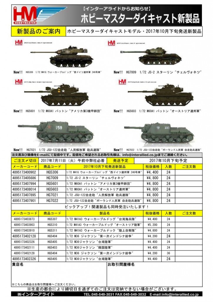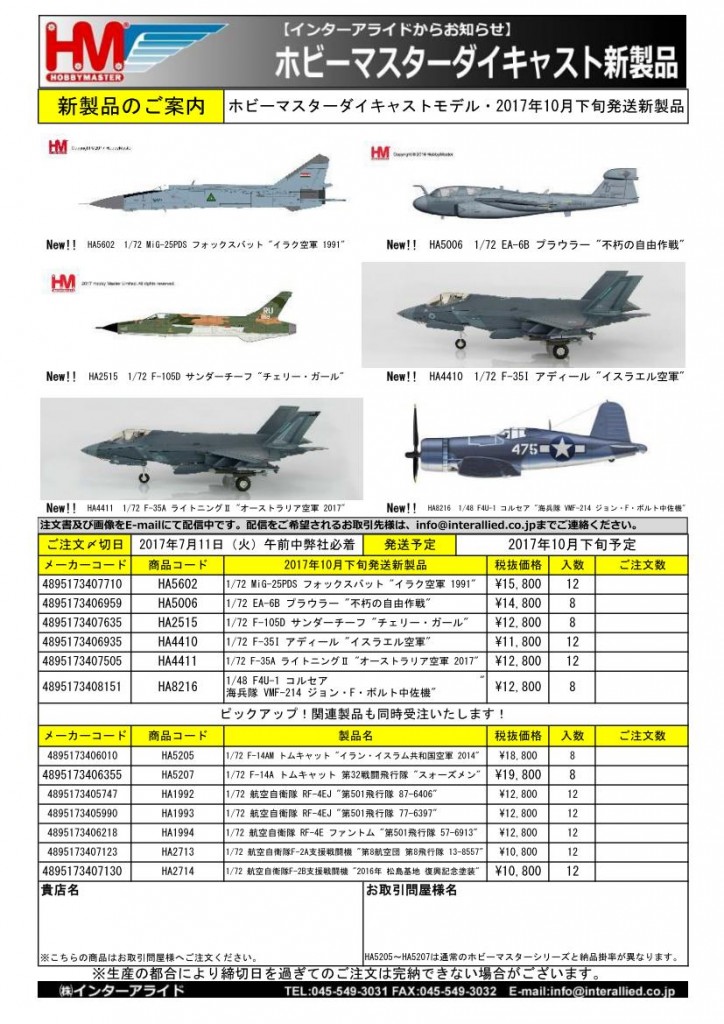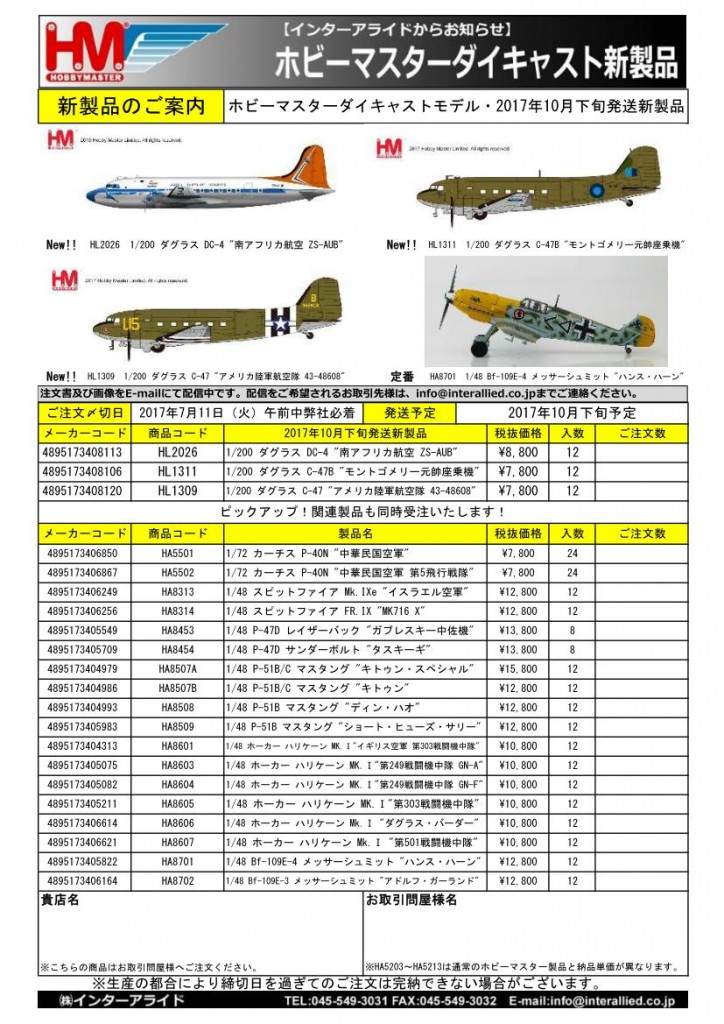 販売店様向けご案内 弊社取り扱いHOBBY MASTER 2017年9月~10月発売予定新製品のご案内書です。