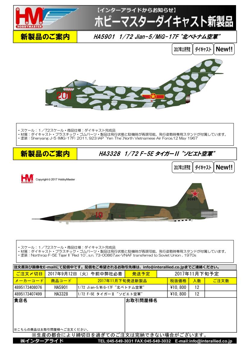 販売店様向けご案内 弊社取り扱いHOBBY MASTER 2017年11月発売予定新製品のご案内書です。