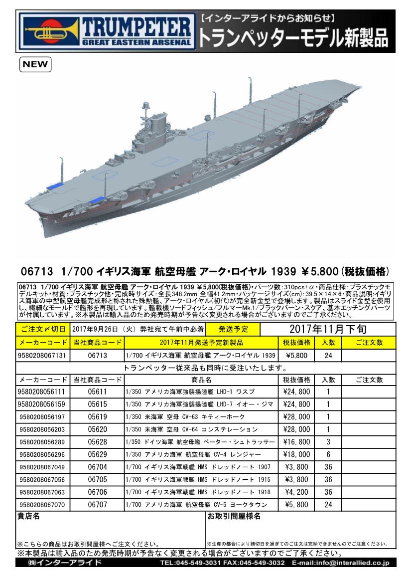 弊社取り扱いトランペッタープラスチックモデル2017年11月発売予定の新製品をご案内します。