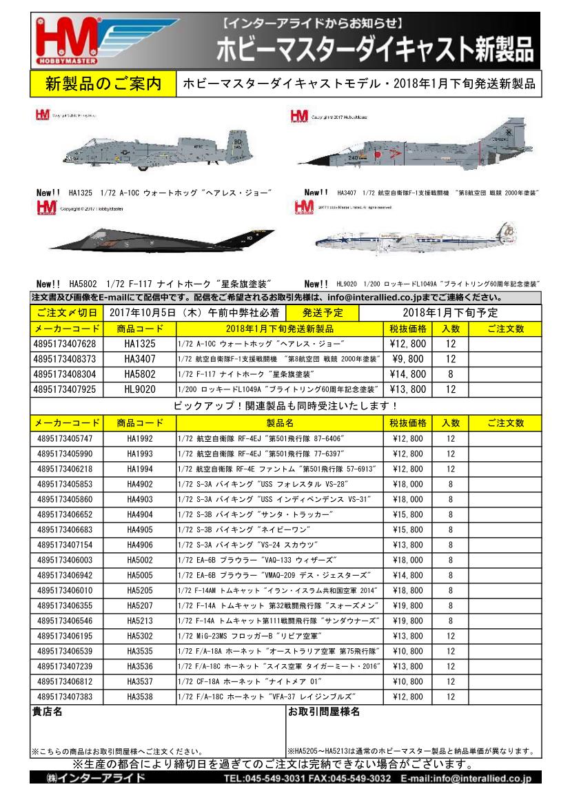 HOBBY MASTER 2018年1月発売予定新製品のご案内書です。