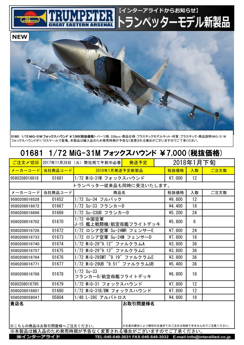 弊社取り扱いトランペッタープラスチックモデル2018年1月発売予定の新製品をご案内します。