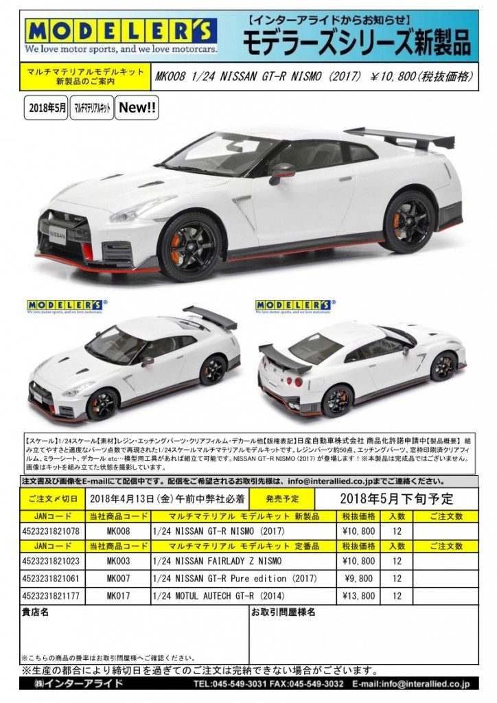 モデラーズ 2018年5月発売予定新製品をご案内します。