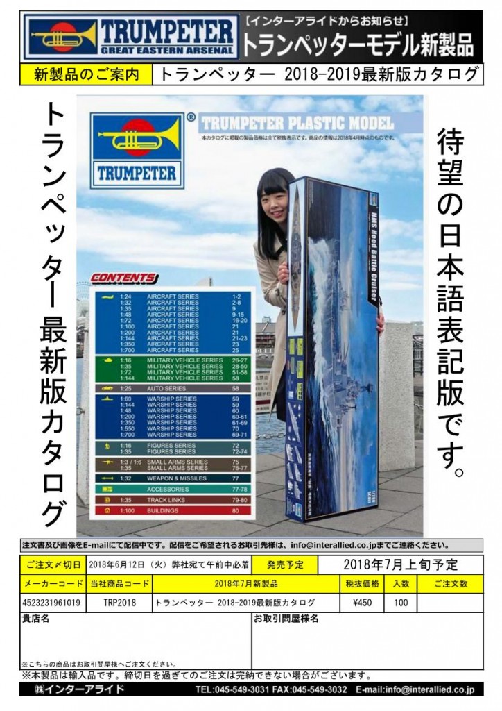 弊社取り扱いトランペッタープラスチックモデル2018年8月発売予定の新製品をご案内します。