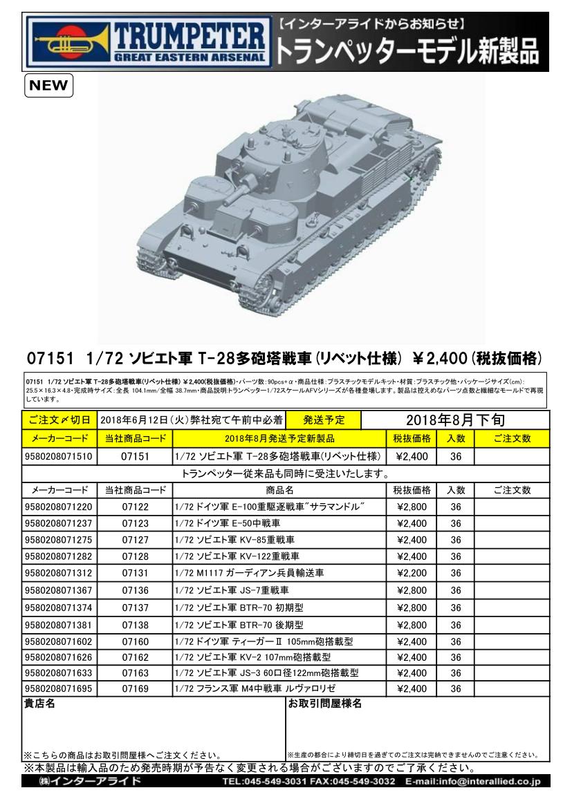 07151 1/72 ソビエト軍 T-28多砲塔戦車(リベット仕様) ¥2,400(税抜価格)
