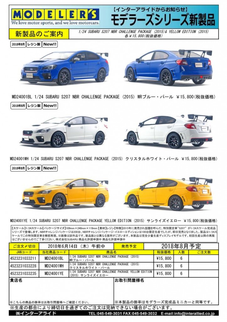 MD24001YE 1/24 SUBARU S207 NBR CHALLENGE PACKAGE YELLOW EDITION (2015) サンライズイエロー ¥15,800(税抜価格)