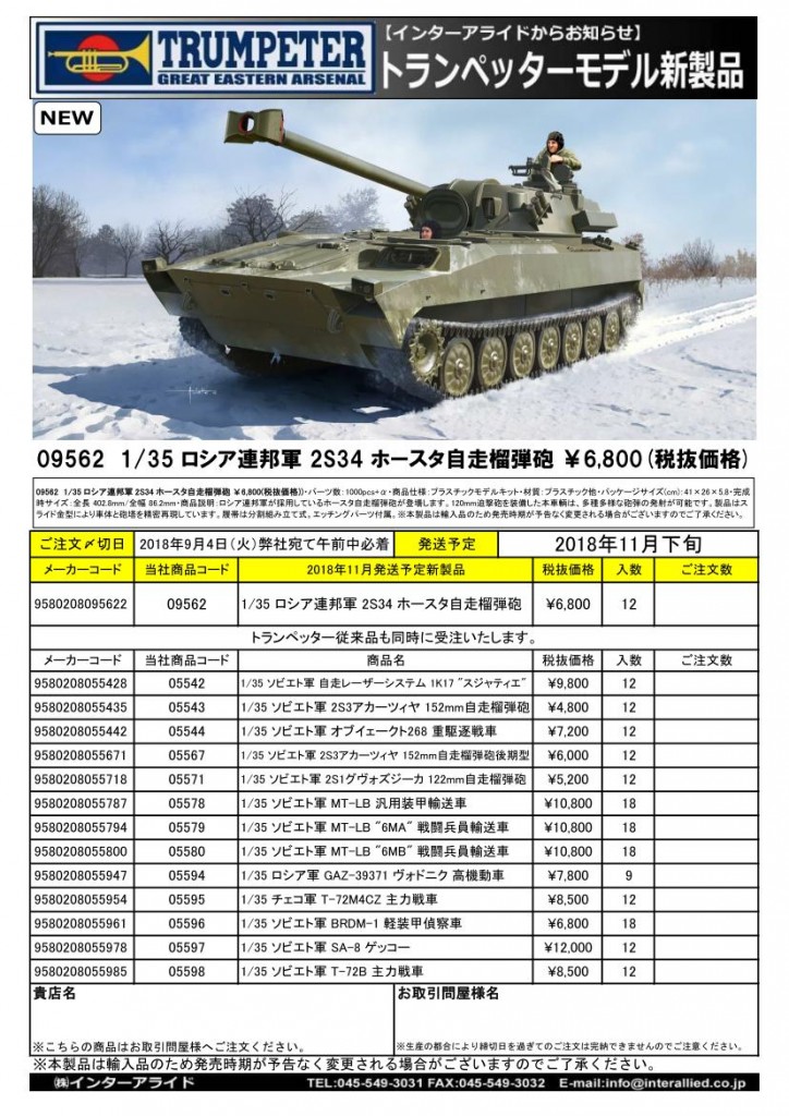 弊社取り扱いトランペッタープラスチックモデル2018年11月発売予定の新製品をご案内します。