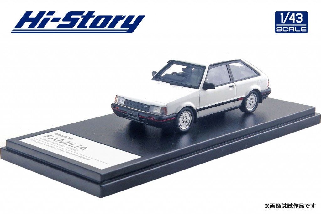 1983年6月より発売が開始されたファミリアターボ1500XGが、1/43スケールハイクオリティレジンキャストラインシリーズで登場します。製品はダイキャストでは表現の難しいモールドとフォルムの再現を追及しています。