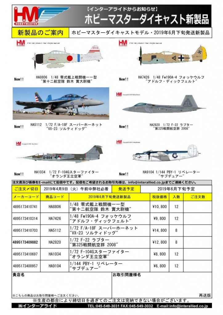 HOBBY MASTER 2019年6月発売予定新製品をご案内します。