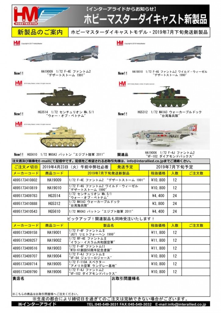 HOBBY MASTER 2019年7月発売予定新製品をご案内します。