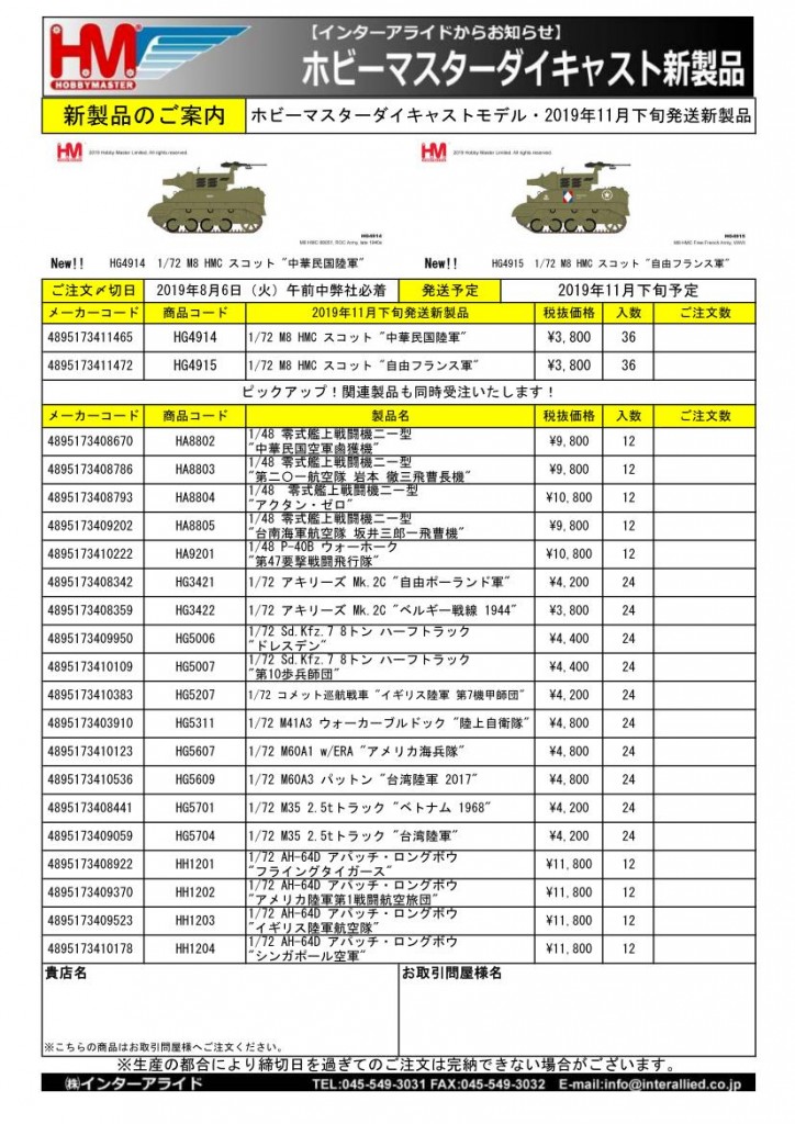 HOBBY MASTER 2019年11月発売予定新製品をご案内します。