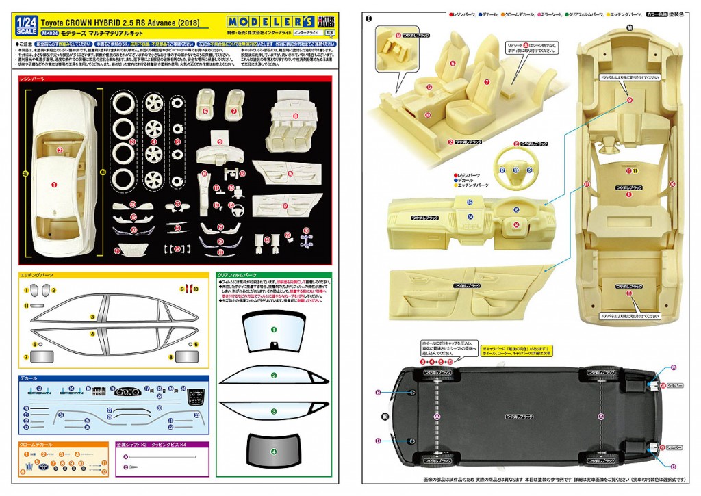 【特徴】 組み立てやすさと適度なパーツ点数で再現された1/24スケールマルチマテリアルモデルキットです。レジンパーツ約50点、エッチングパーツ、窓枠印刷済クリアフィルム、ミラーシート、デカール etc…模型用工具があれば組立て可能です。