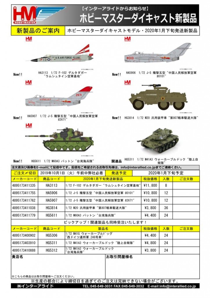 HOBBY MASTER 2020年1月発売予定新製品をご案内します。