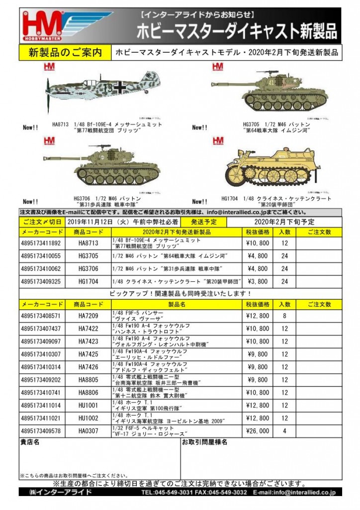 HOBBY MASTER 2020年2月発売予定新製品をご案内します。