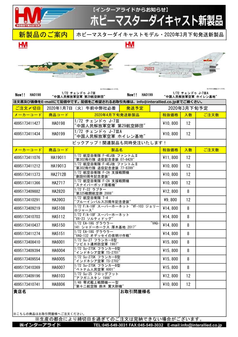 HOBBY MASTER 2020年3月発売予定新製品をご案内します。