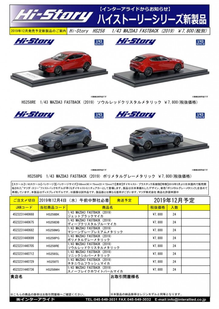 Hi-Story 2019年12月発売予定新製品をご案内します。