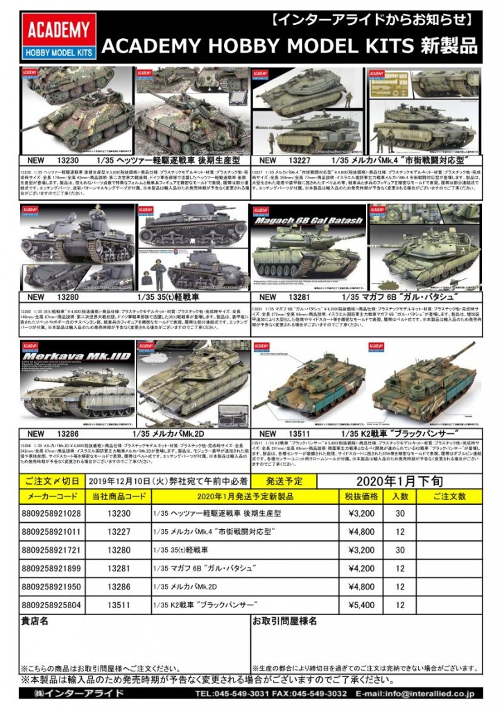 弊社取り扱いACADEMY HOBBY MODEL KITS 2020年1月発売予定の新製品をご案内します。