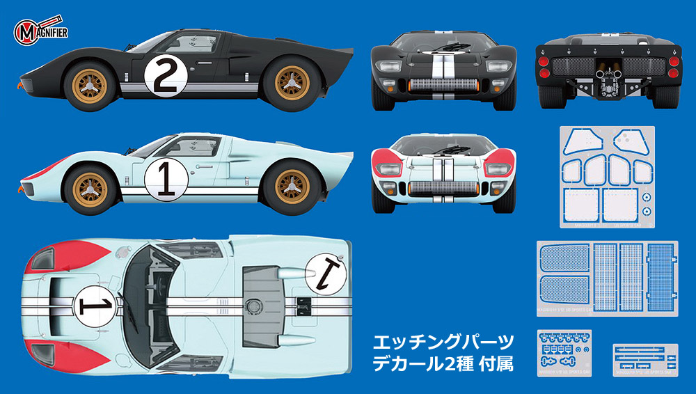 前後サスユニット・スプリング可動式/アップライト完全再現・フレキシブル ブレーキホース/クーリングダクトパイプ/アクセスパネル内マスターシリンダー再現・前後チルトカウル可動/メッキ蝶番付属/ロックピン付属・リアルな質感 バケットシート/シフター位置可変・可動ドア・ラジエターメッシュ/ラバータイヤ・精密V8エンジン/精密4バレルホーリーキャブ・オイルライン/油冷パイプ/燃料パイプ/ヘッダース/エキゾーストパイプ完全再現。