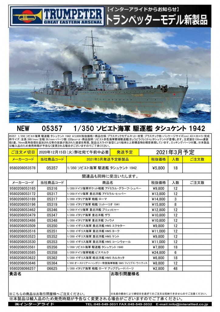 トランペッタープラスチックモデル2021年3月発売予定の新製品をご案内します。