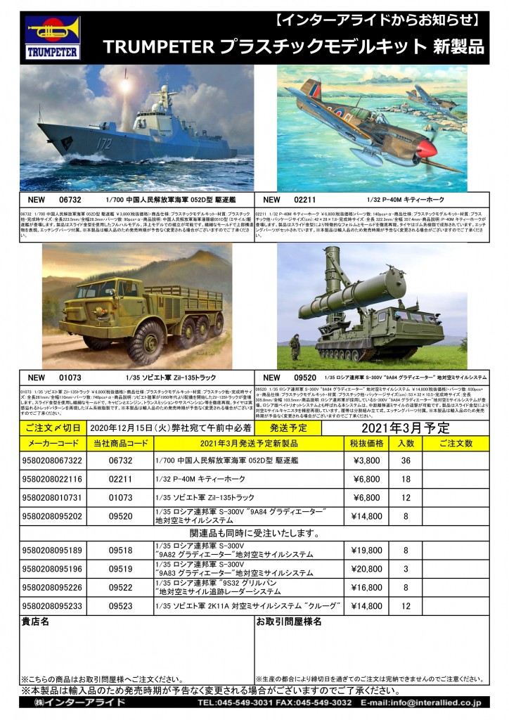 弊社取り扱いトランペッタープラスチックモデル2021年3月発売予定の新製品をご案内します。