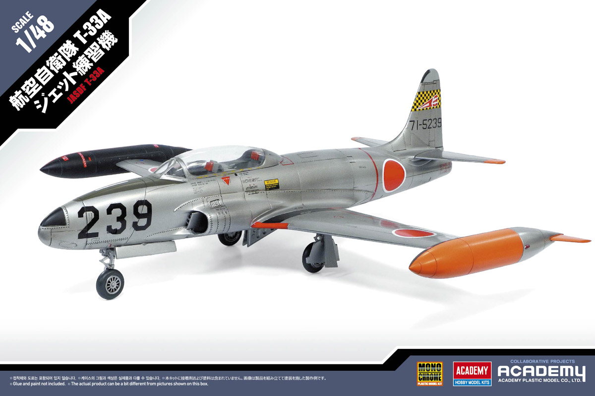 ・商品説明:航空自衛隊で長期間に亘って使用された中等練習機 T-33A(若鷹)が1/48スケールで登場します。