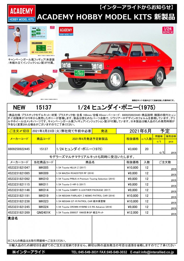 15137 1/24 ヒュンダイ・ポニー(1975) ¥3,960(税込価格)