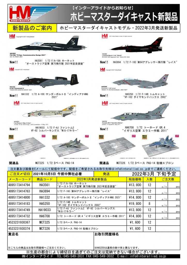HOBBY MASTER 2022年3月発売予定新製品をご案内します。