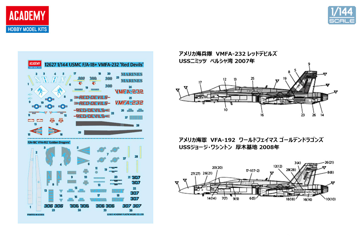 デカールはアメリカ海兵隊VMFA-232 “レッド・デビルス”、アメリカ海軍VFA-192 “ゴールデン・ドラゴン”
