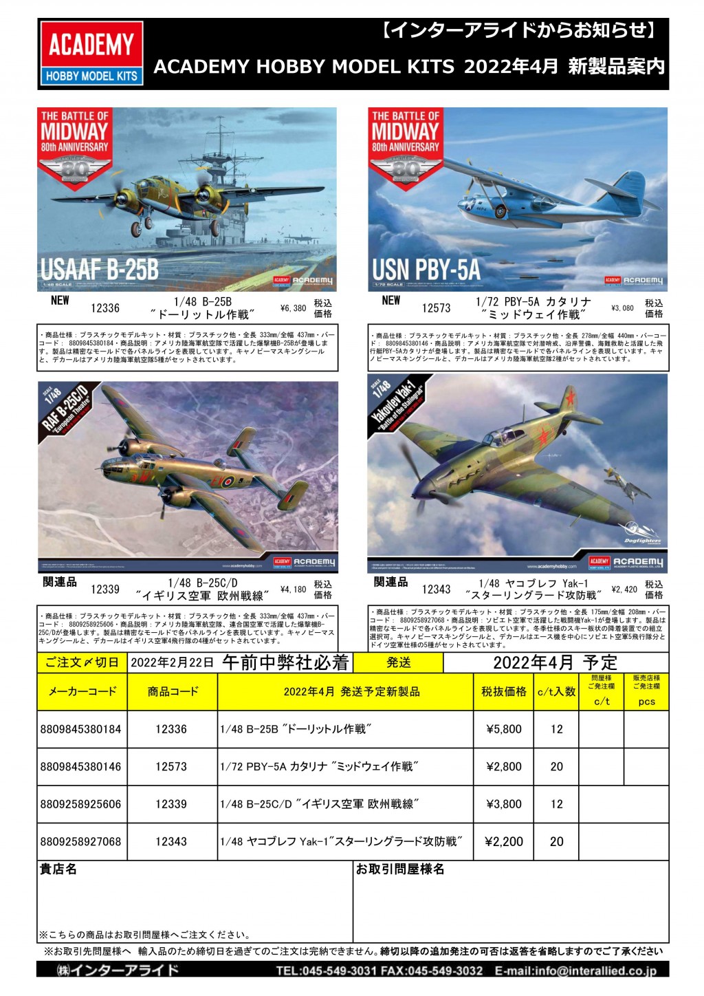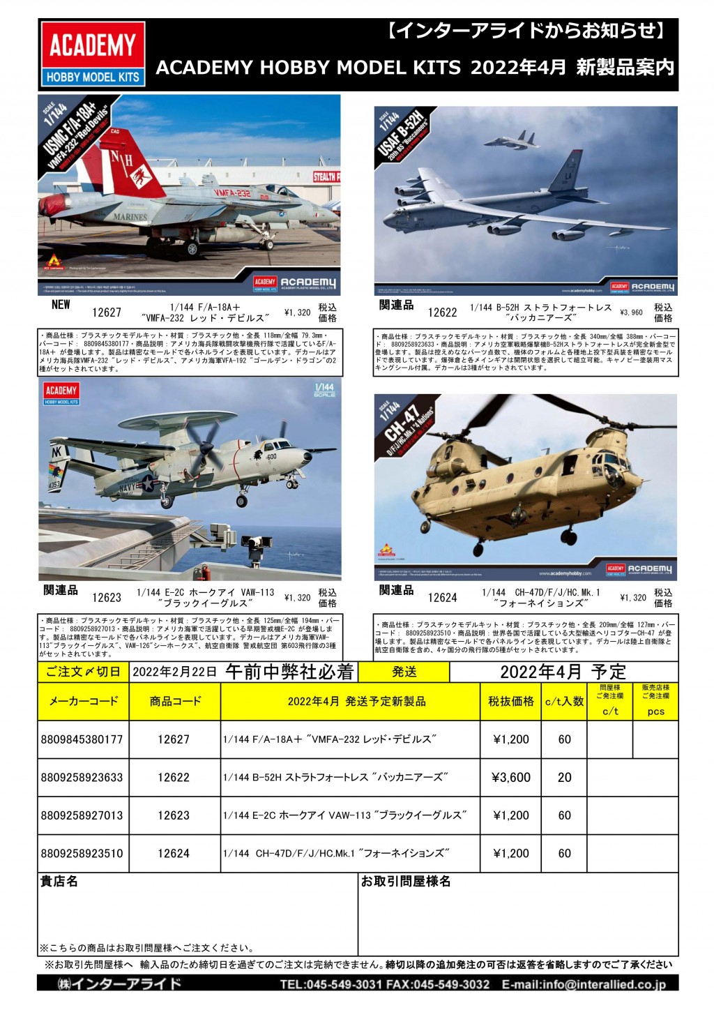 弊社取り扱いACADEMY HOBBY MODEL KITS 2022年4月発売予定の新製品をご案内します。