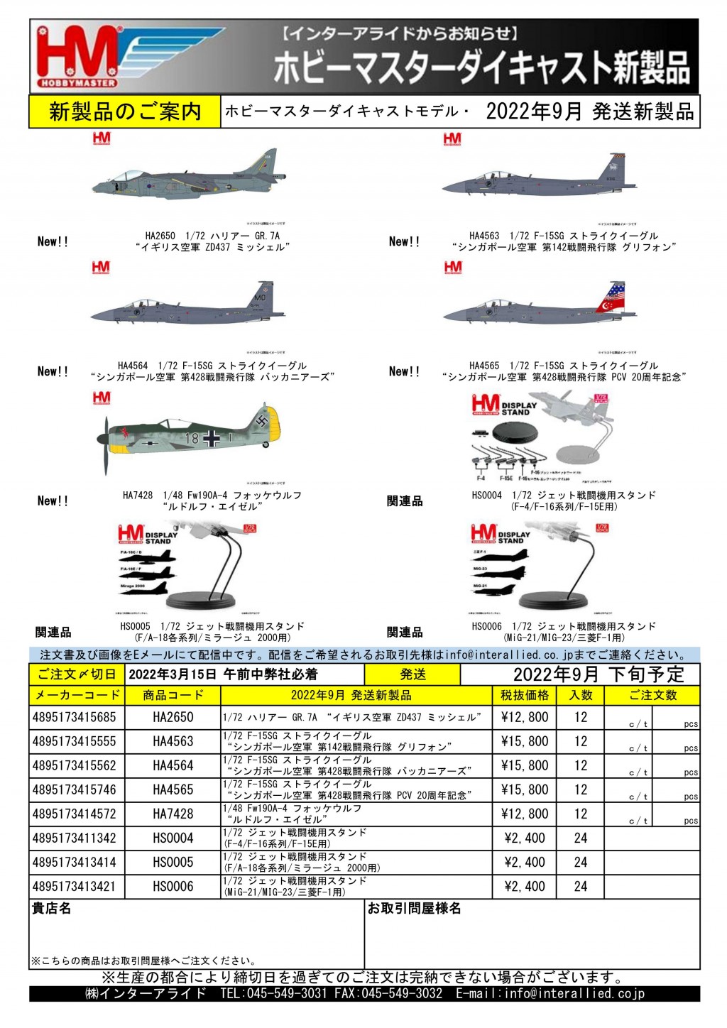 HOBBY MASTER 2022年9月発売予定新製品をご案内します。