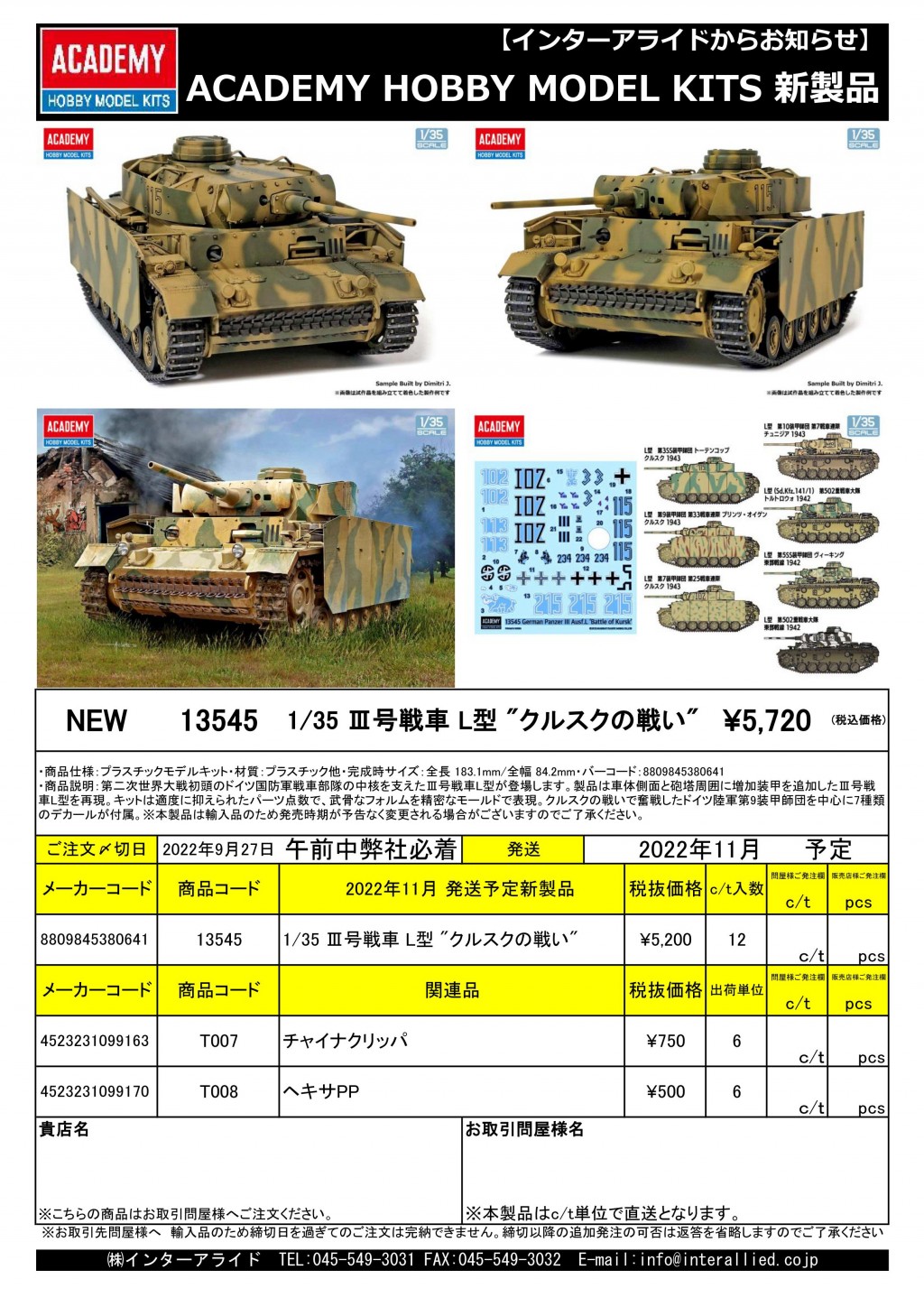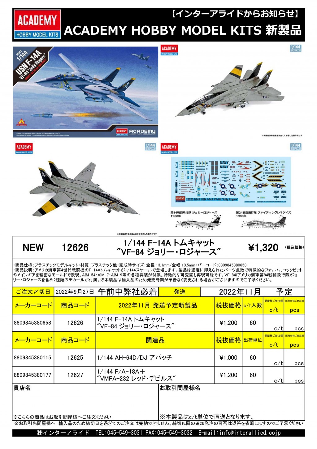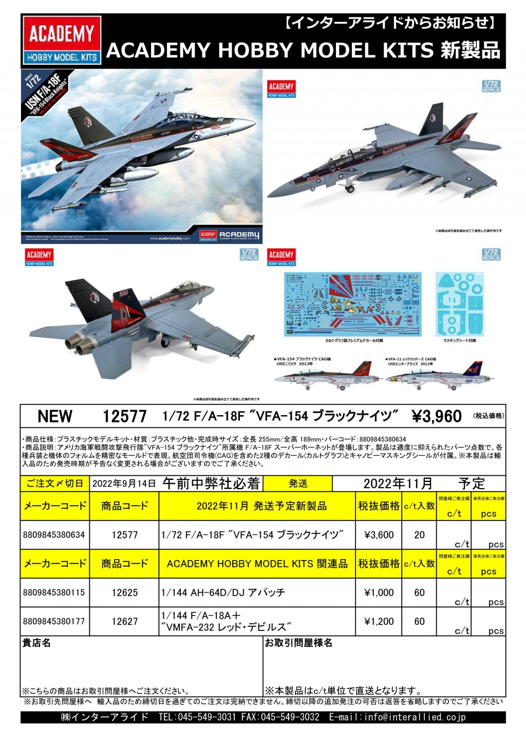 弊社取り扱いACADEMY HOBBY MODEL KITS 2022年11月発売予定の新製品をご案内します。