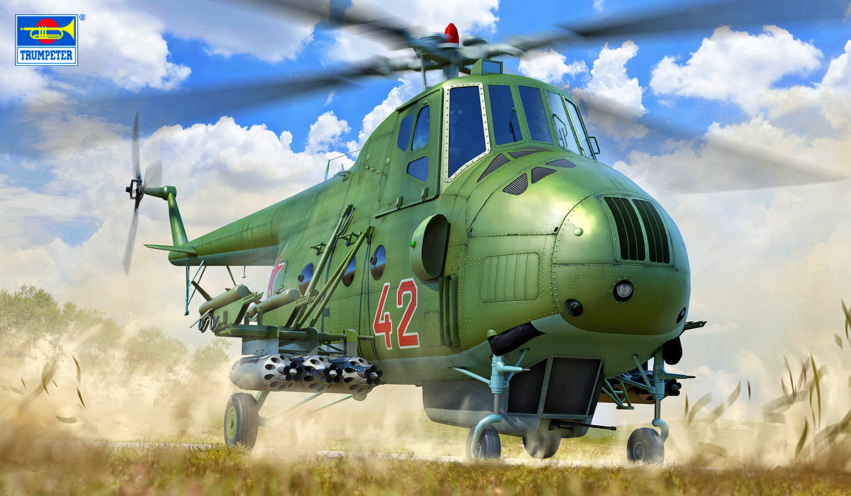 ・完成時サイズ:全長340.6mm/全幅430mm・商品説明:ワルシャワ条約機構軍や各国で運用されていたヘリコプター、Mi-4 ハウンドの武装搭載型が登場します。