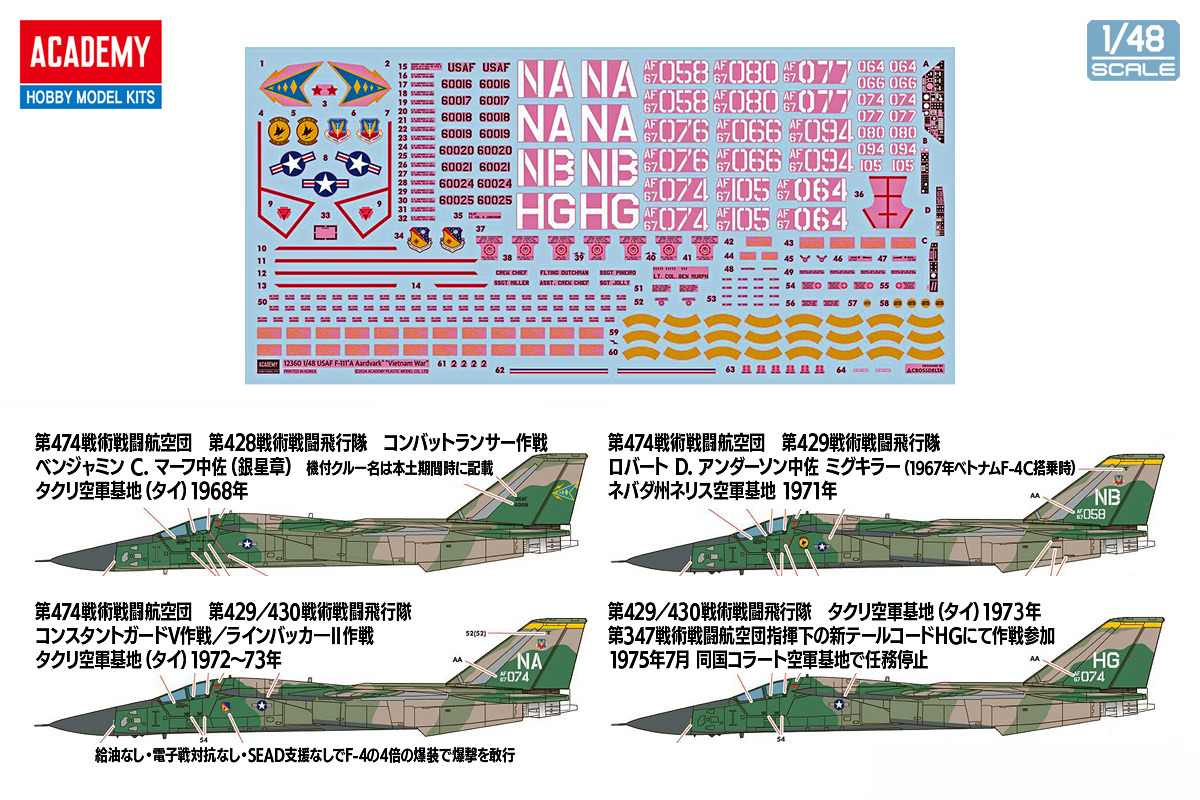 デカール4種(アメリカ空軍第474戦術戦闘航空団他)付属。