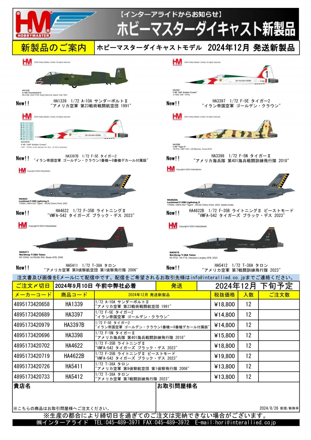 HOBBY MASTER 2024年12月発売予定新製品をご案内します。
