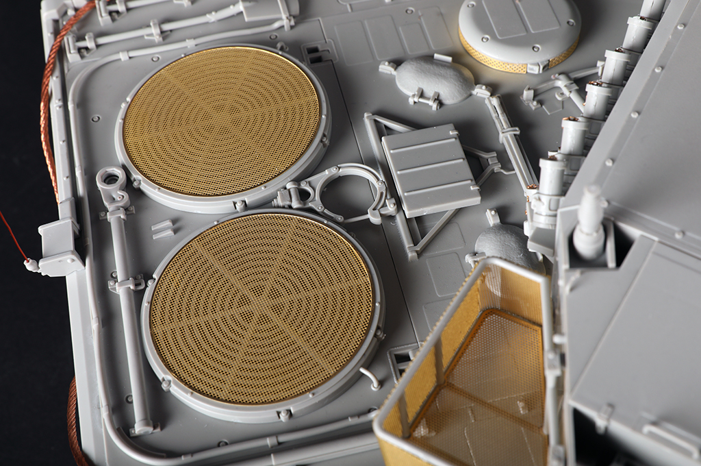 製品はスライド金型を使用した車体上部と下部、繊細なモールドで砲塔内インテリアを再現。