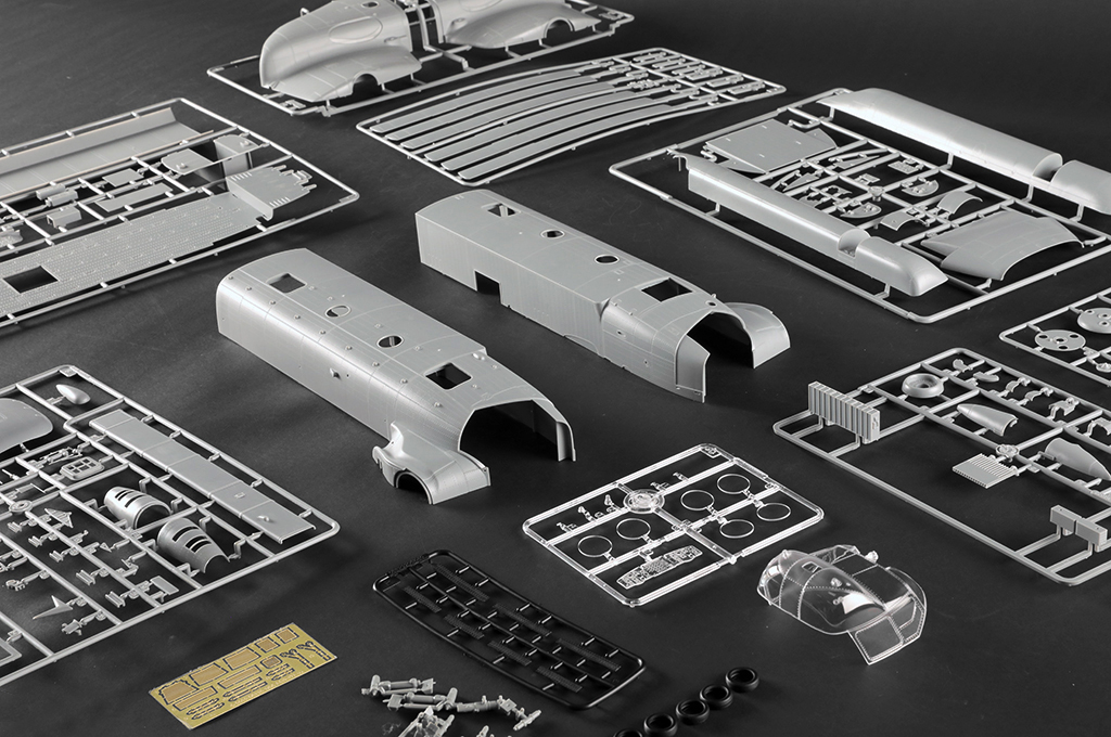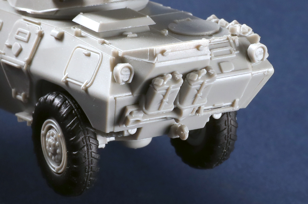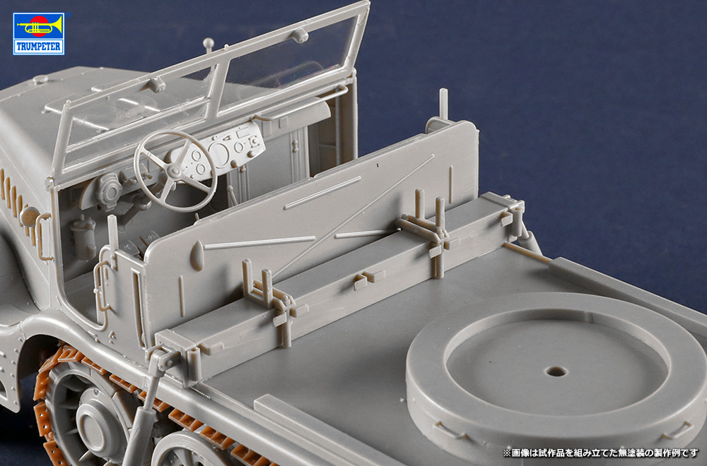製品は精密なモールドで車体のモールドやパネルライン、運転席や駆動部とエンジンを精密再現。履帯は分割組み立て式、タイヤはゴム系樹脂製。