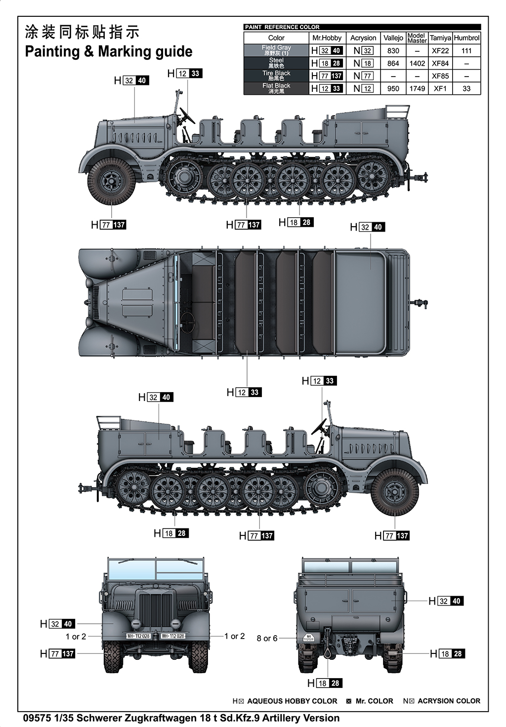 09575 1/35 Schwerer Zugkraftwagen 18 t Sd.Kfz.9 Artillery Version