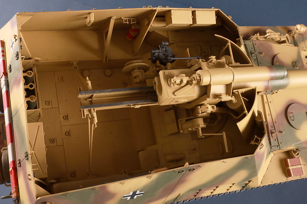製品はスライド金型を使用した車体上部と下部、繊細なモールドで戦闘室と車内インテリアや機関部を再現。砲身や牽引ワイヤーは金属製。履帯は分割組み立て方式です。