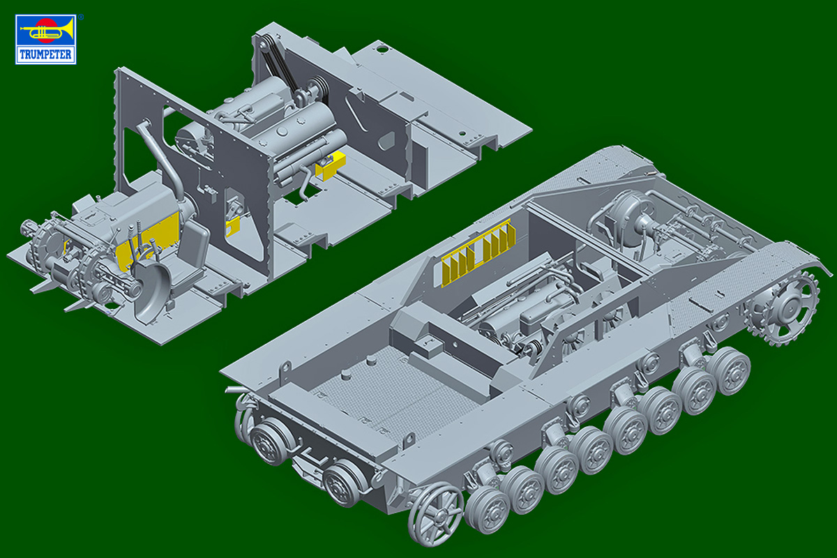製品は戦闘室内部、エンジンやトランスミッション・サスペンション等を精密なモールドで再現。履帯は実感ある分割組立式です。