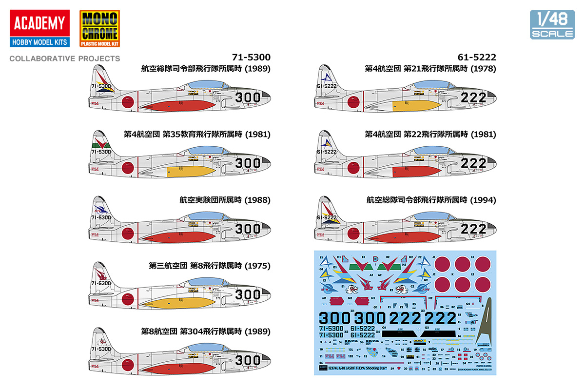 航空自衛隊航空総隊所属機を含めたデカール8種が付属。